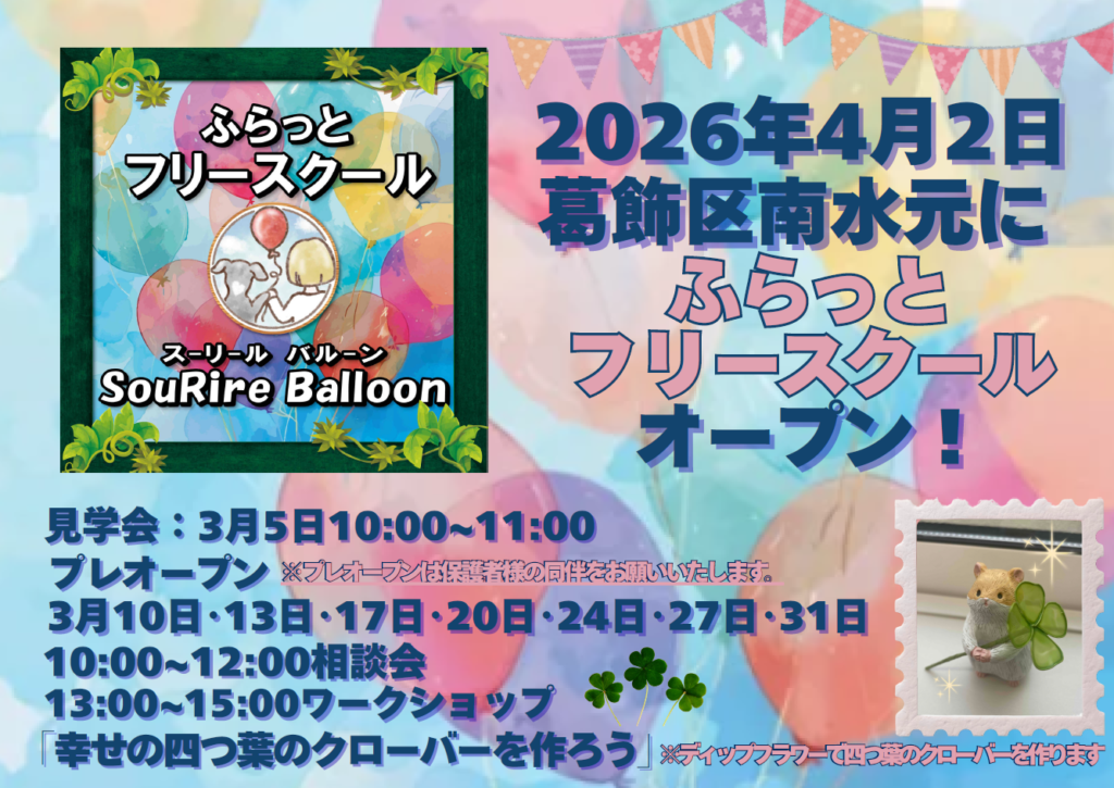 SouRire balloon ふらっと フリースクール見学会&プレオープンのお知らせ